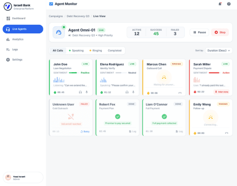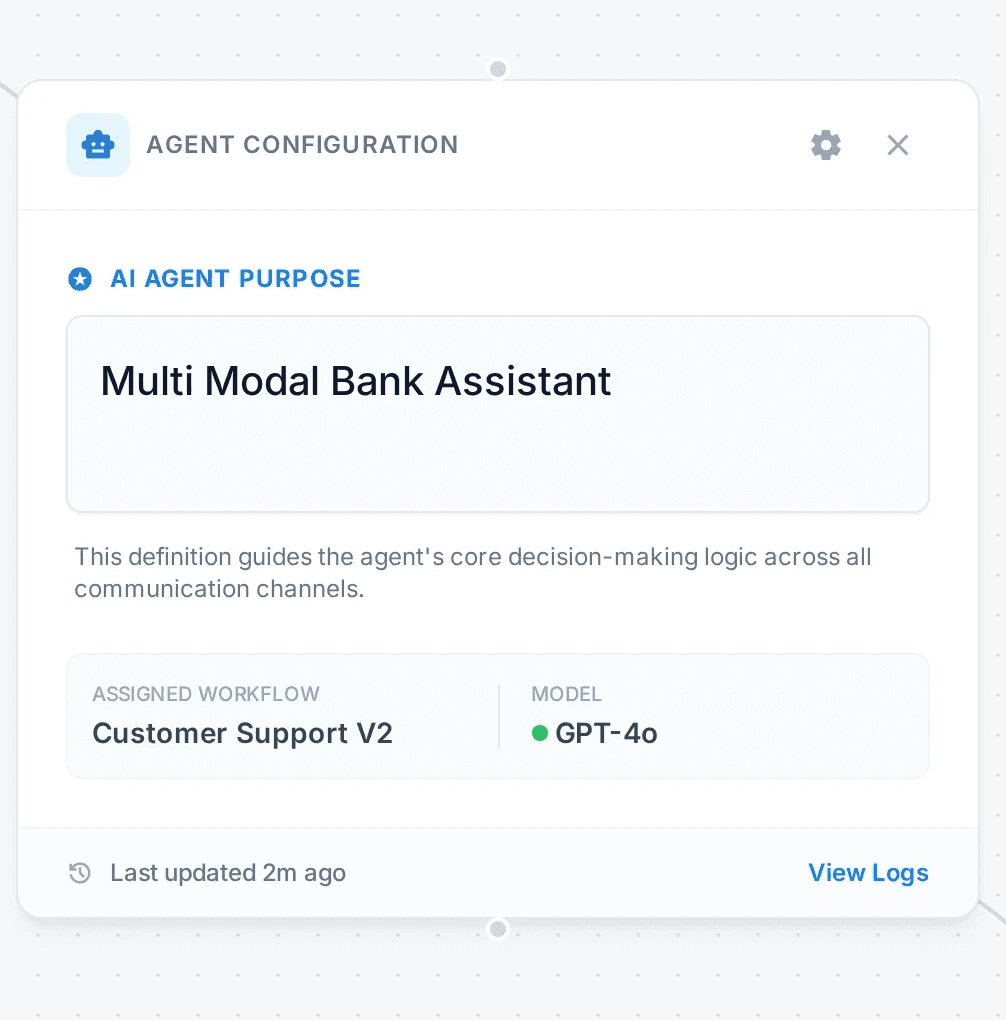 Configure each AI agent’s identity, behavior, language, and decision logic - all in one place. Define how agents speak, react, interrupt, escalate, and operate across real customer conversations, with full control and accountability.