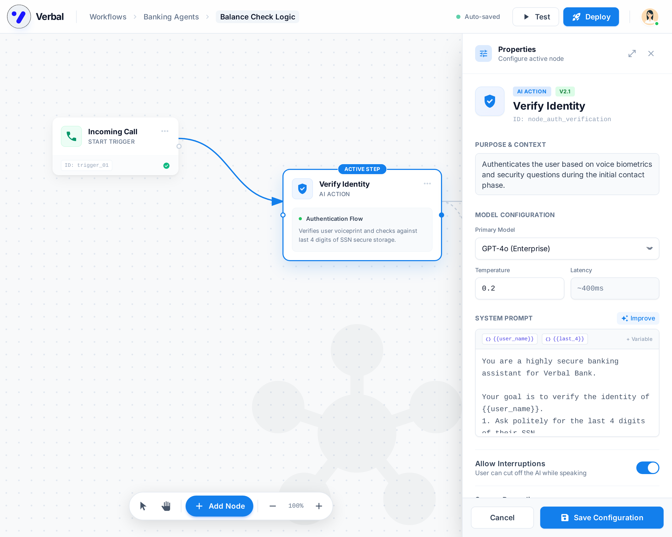 Verbal is an enterprise platform for managing AI voice agents in real time - orchestrating conversations, routing decisions, and human handoffs with full visibility and accountability
